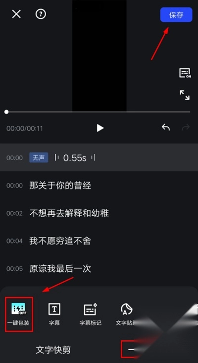 一键包装:智能识别关键词,匹配字幕,文字贴纸,音乐音效,增加视频氛围,提高编辑效率。