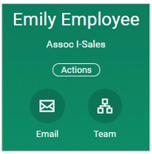 3、在您的名字和职位下方会显示活动 (Actions)、邮件(Email)和团队 (Team)图标。