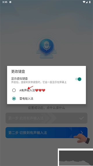 4、返回手机输入法切换界面,选择有声输入法作为当前输入方式。