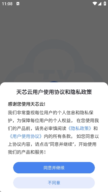 2、在弹出的用户协议和隐私政策界面,点击同意并继续,然后就进入到软件的首页了。