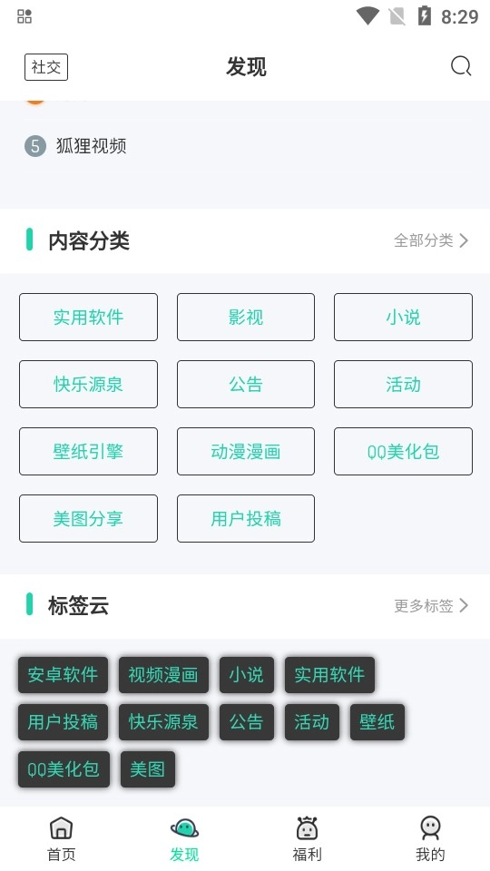 3、点击下方的“发现”,支持按照内容,标签快速筛选感兴趣的资源。