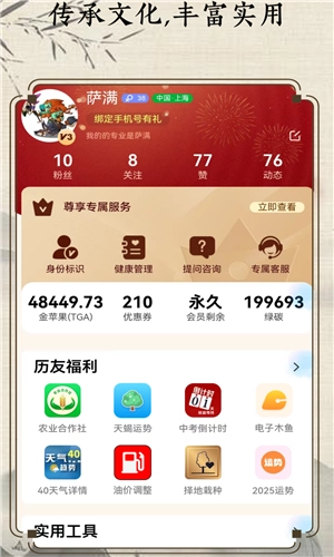 多样工具,生活助手:丰富小工具电子木鱼、时令养生、百岁图、等应有尽有,满足你多样化的生活需求。