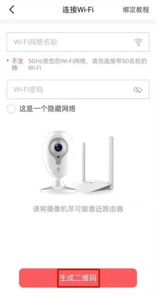 4、输入wifi信息后,点击生成二维码,使用和家亲摄像头扫描二维码即可完成绑定。