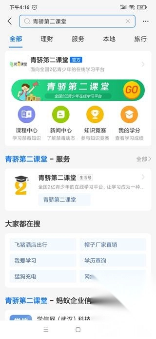 2、在搜索栏输入青骄第二课堂并进入;