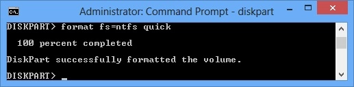 8、输入 format fs=ntfs quick 命令,开始格式化,并建立NTFS格式。