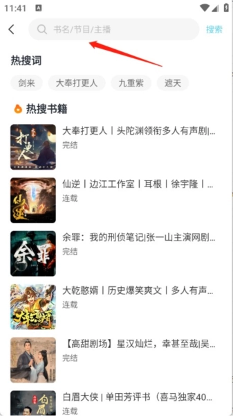 3、无论想听哪本书,都可以通过书名或相关节目快速搜索到。
