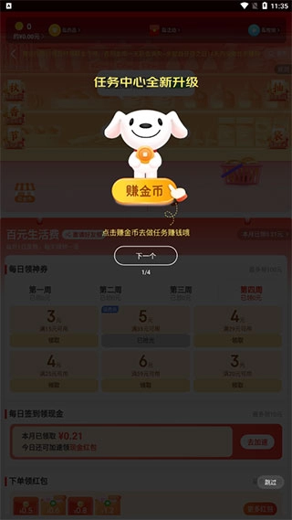 4、【主菜单】不同于京东点击【赚钱】按钮在任务中心赚钱。
