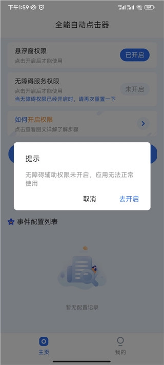1、在本站完成安装后点击打开进入,进入主页后,你需要开启悬浮窗权限与无障碍服务权限。