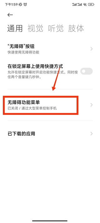 3、在通用页面中,找到无障碍功能菜单并点击。