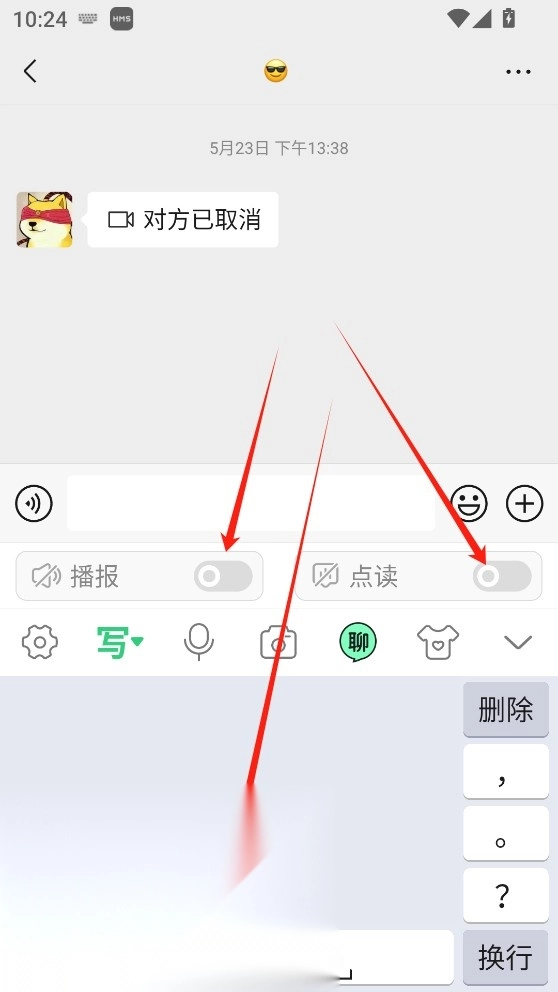 3、在微信输入信息这个,开启点读功能,就可以使用了。