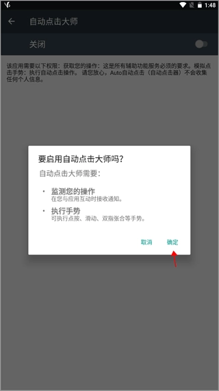(1)打开之后页面上弹出了一个小窗口,上面显示“此应用需要激活无障碍服务才能正常工作……”,看完就可以点击下方的“确认”按钮;