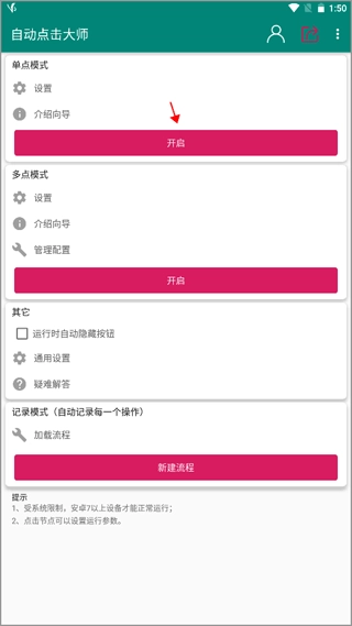 自动点击大师操作简单,用户能够轻松的上手使用,直接一键设置就可以应用,帮助用户解决多种点击情况,功能专业,是一款非常好用全面的手机自动点击工具软件。