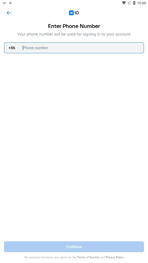 1、在手机上启动VK中文版应用,随后进入登录页面。