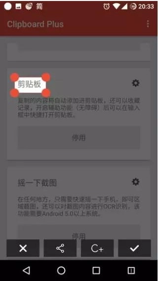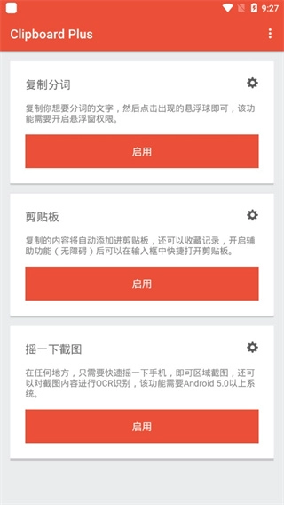 1、在本站完成安装后点击打开进入,clipboardplus的功能从设置界面即可看出,包括复制分词、剪贴板以及摇一摇截图。