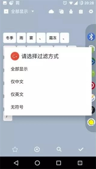 4、在分词界面内有筛选功能,可以以中文、英文和符号来进行过滤。云按钮的功能是切换玻森分词和本地分词。玻森不用过多介绍。本地分词则是将每个字都分词,虽然简单暴力,但应付极端情况不失为一个好方案。