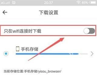 4、在“设置”窗口中,找到“只在WIFI连接时”栏目下开启即可