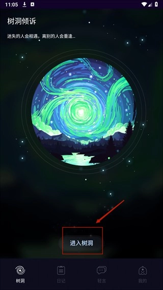 1、打开软件后点击“树洞”