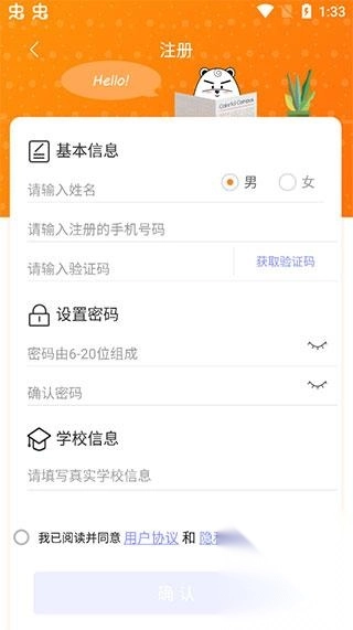 1、新用户注册需使用手机号,同时要填写基本信息、设置密码并完善学校相关信息;