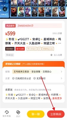 3、在账号详情页点击【立即购买】即可。