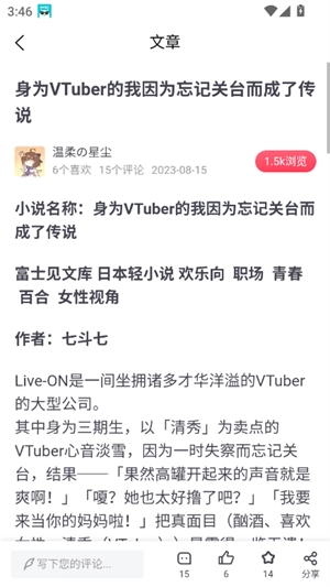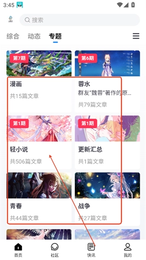6、选择感兴趣的内容类型,比如小说、漫画、轻小说等。