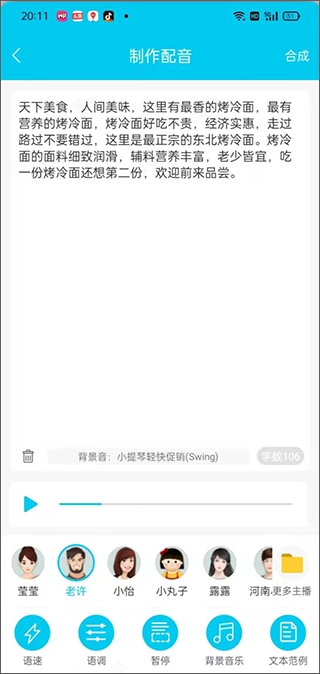 具有简单易用的配音工具能够一键合成高清流畅的语音。