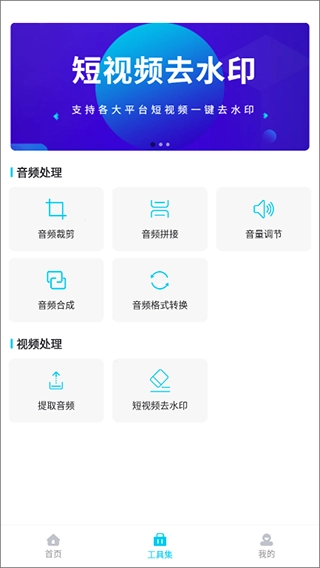 3、同时在“工具类”中还提供了音频处理和视频处理功能。
