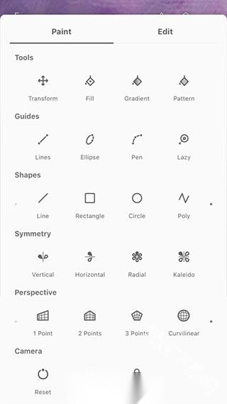 3、几乎所有的工具或操作都停靠在主界面,专业的画板让你随时拿出手机创作;
