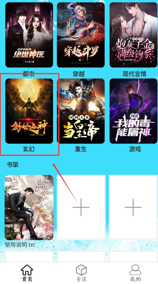 1、打开首页后,依据页面上的选项挑选书籍,点击对应书籍就能进入阅读全文。