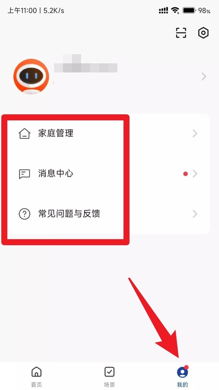 4. 进入「我的」页面,点击【家庭管理】,在这里可以增添家庭成员,查看系统推送消息以及常见问题的解答。