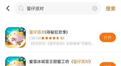 3、例如搜索“蛋仔派对”,输入后点击“搜索”,将显示众多的搜索结果;
