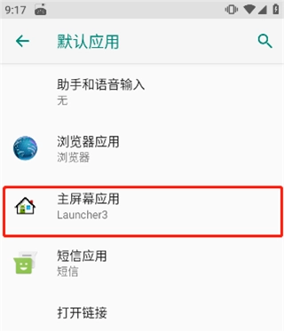 3、进入系统默认应用启动界面,打开“主屏幕应用”;