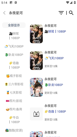 3、点击搜索后,会显示全部的相关影视资源。
