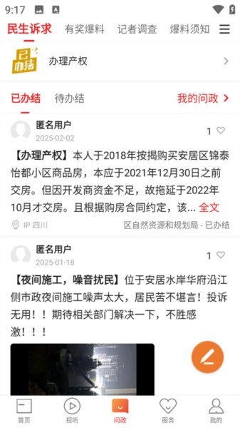 3、在问政界面下,我们可以参与到一系列诉求、爆料中去,可以与政府一对一互动,能够解决自己生活中出现的各种问题。
