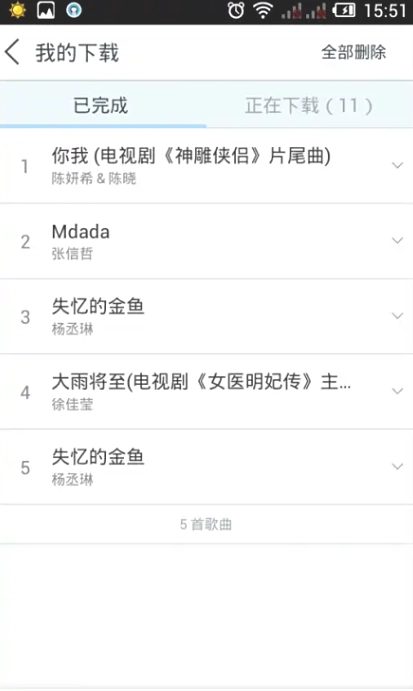 进入我的页面,即可查看到所有的歌曲了,同时也可在此页面,删除、管理歌曲。