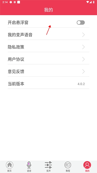 1、进入“我的”页面,接着点击上方的“开启悬浮窗”按钮。