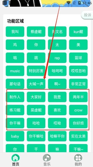 鸡乐盒为用户准备众多坤坤的语音内容,哪里不会点哪里,超级有趣。