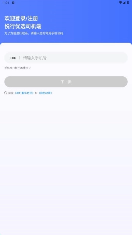 1、完成账号安装后,司机即可提交手机号完成注册流程。