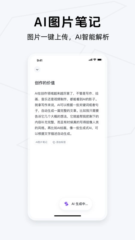 -AI图片记录:拍摄或上传一张图片,AI自动识别图片中的文字和内容,生成详细的笔记,将图片存档下来。