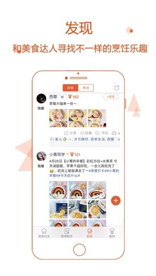 1、借助厨房社区平台,能够在线查看厨友们分享的最新日常动态。