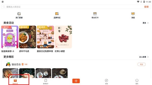 4、可以关注厨房达人,及时查看日常动态内容更新。