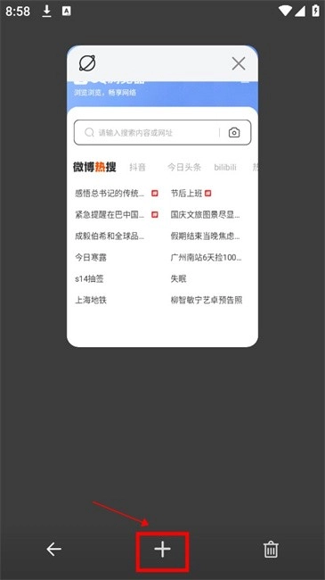 2.在多窗口页面后点击【+】号