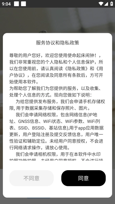 打开软件后,请同意对应的服务协议与隐私政策。