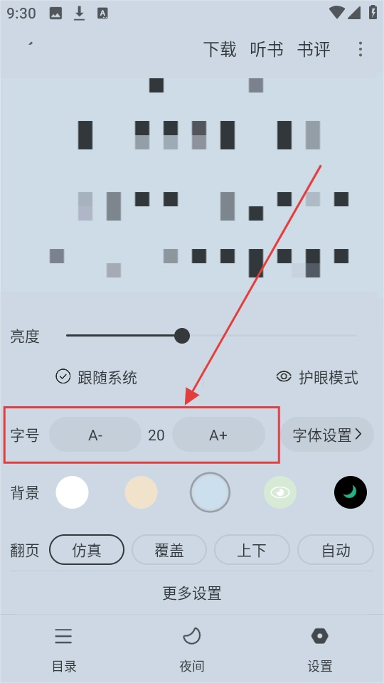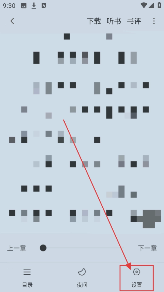 3、在阅读页面,点击下方【设置】按钮,就能调整阅读相关的设置咯。