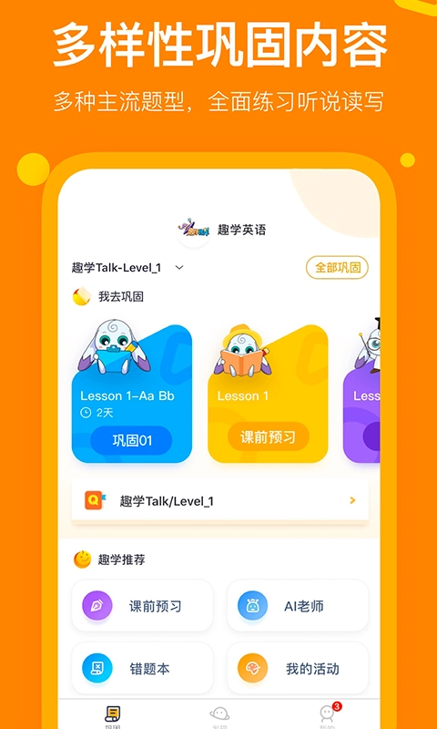 2、同步小学主流英语教材,帮助孩子复习和预习课文,通过实践掌握课堂知识。