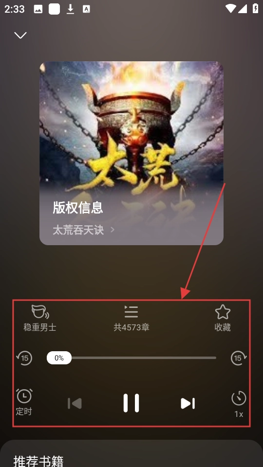 4、开启听书后,界面有播放控制等功能,能调整播放速度、设置定时等,按需使用就行啦。