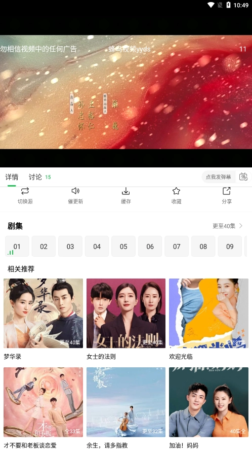 1、使用蜂鸟视频追剧时,既能开启弹幕进行吐槽互动,也可以在对应资源下方发表评论分享自己的看法。