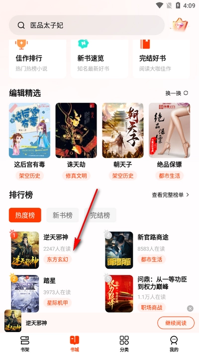 1、书城页面会向用户推荐热门小说榜单,方便用户及时发现优质的小说作品。