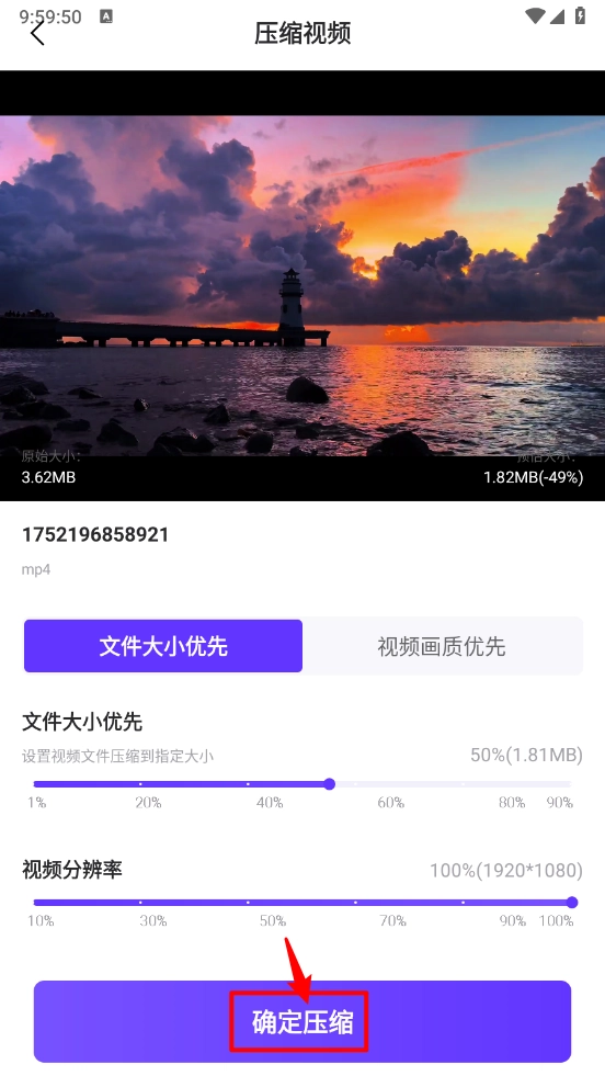 5、接着选择文件大小、视频分辨率、和视频画质,完成后点击"确定压缩"。