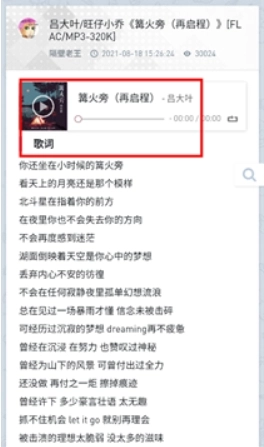 4、点击喜欢的歌曲,可以免费收听,查看完整歌词