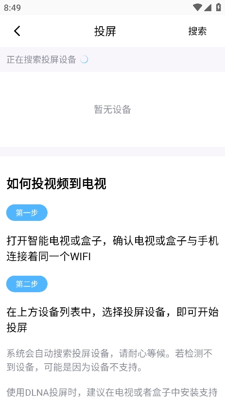 4.点击右上角的【投屏】按钮,会立刻搜索周边可投屏的设备
